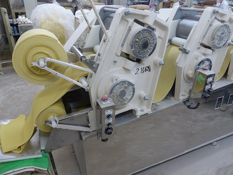 複合工程後の熟成を経た粗麺帯を、それぞれの使用目的に合わせた厚さになるまで丁寧に延ばしていきます