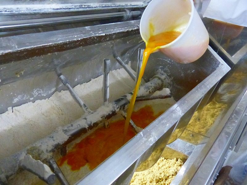 それぞれの麺に最適な原材料を、大型ミキサーで丁寧に混ぜ合わせます